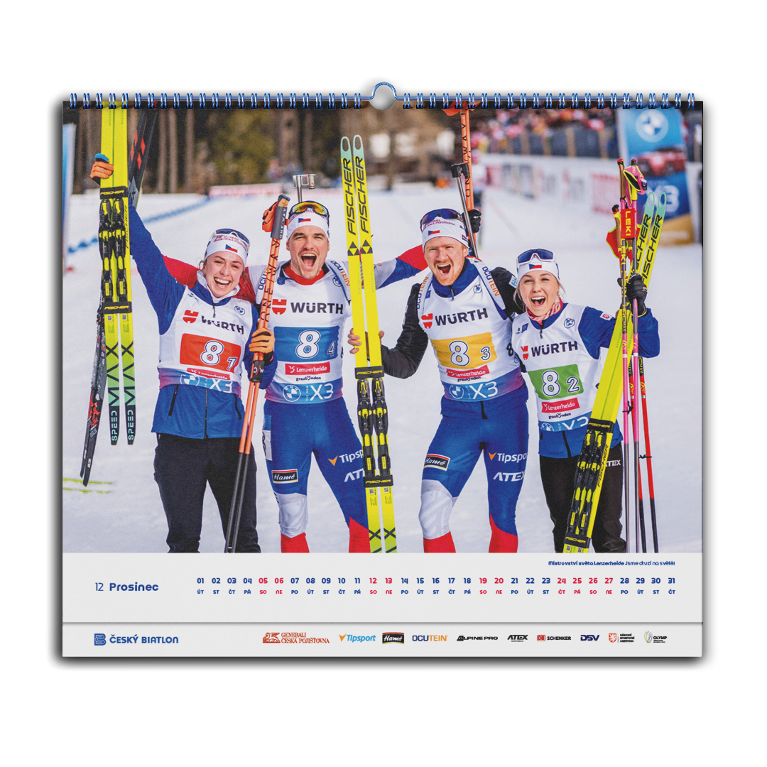 I v roce 2026 můžeš mít české biatlonisty každý den na očích. V exkluzivním nástěnném kalendáři najdeš stříbrnou smíšenou štafetu, Makulu i s jejím jednorožcem nebo nové profilové fotky. Pozor, jde o limitovanou edici a naši reproši obvykle objednávají i pro babičky.